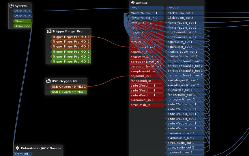 Imagen de cabecera: Joshua Schnable (CC BY) | Esquema conexiones: xphnx (CC BY-SA) | Capturas de pantalla 1-4, 8: Manual Ardour 5 (GPLv2) | Capturas 5-6: Libre Music Production (CC BY-SA) | Capturas 7, 9-12: xphnx (CC BY-SA) | Trigger Finger: Brandon Daniel (CC BY-SA)